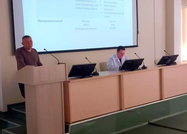6 марта состоялось совещание с медицинскими работниками с целью оказания организационно-методической помощи. Главный внештатный специалист Минздрава РБ по остеопорозу и остеоартрозу, руководитель Республиканского центра профилактики лечения остеоартроза, врач-травматолог-ортопед РКБ им. Г.Г. Куватова Ильфат Гафаров выступил с докладом «Современный взгляд на терапию остеопороза и остеоартроза согласно клиническим рекомендациям Минздрава России» на совещании с медицинскими работниками ГКБ № 13 для решения вопросов по тактике ведения пациентов с остеоартрозом и остеопорозом. В своем докладе Ильфат Радмирович осветил вопросы профилактики пациентов с остеоартрозом и остеопорозом, проблемы маршрутизации данной категории пациентов и предложил пути решения поставленных задач. Проводимые встречи позволяют не только обмениваться опытом, но и обсудить волнующие вопросы.
